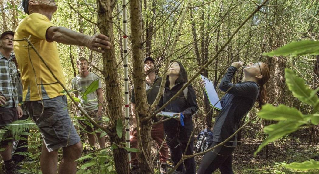 Students from UC's Te Kura Ngahere | School of Forestry visit North Canterbury's Tiromoana Bush to measure tree growth and regeneration as a result of the restoration project, which began 15 years ago.