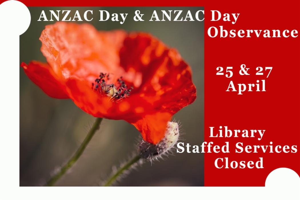 Library staffed services closing for ANZAC Day and ANZAC Day Observance